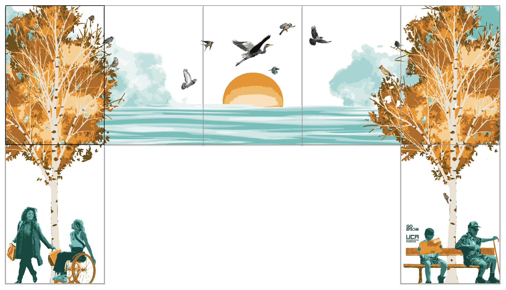 A vibrant vinyl mural highlighting Epsom's green spaces